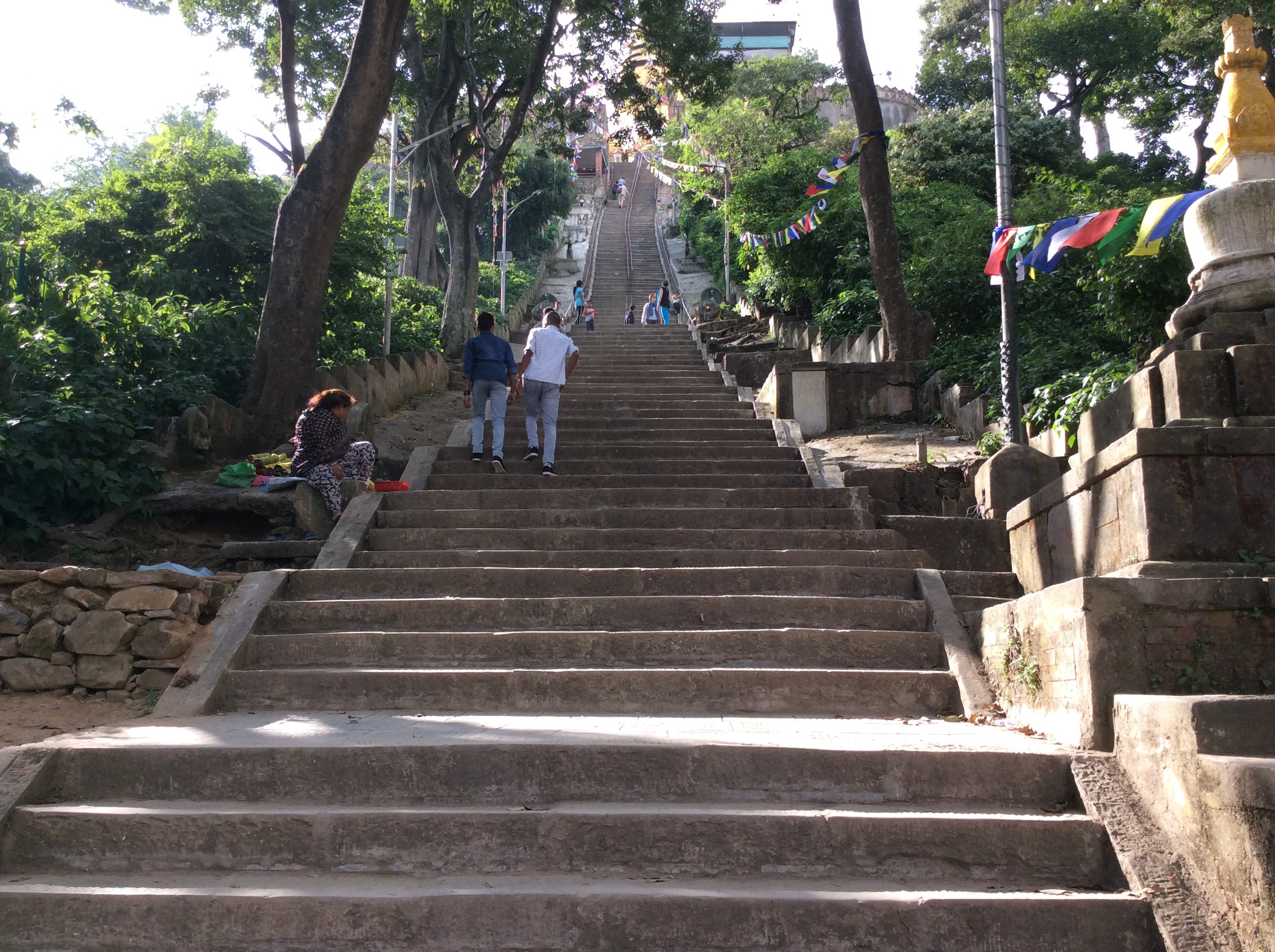 Up the steps to the Monkey Temple in Swayambhunath